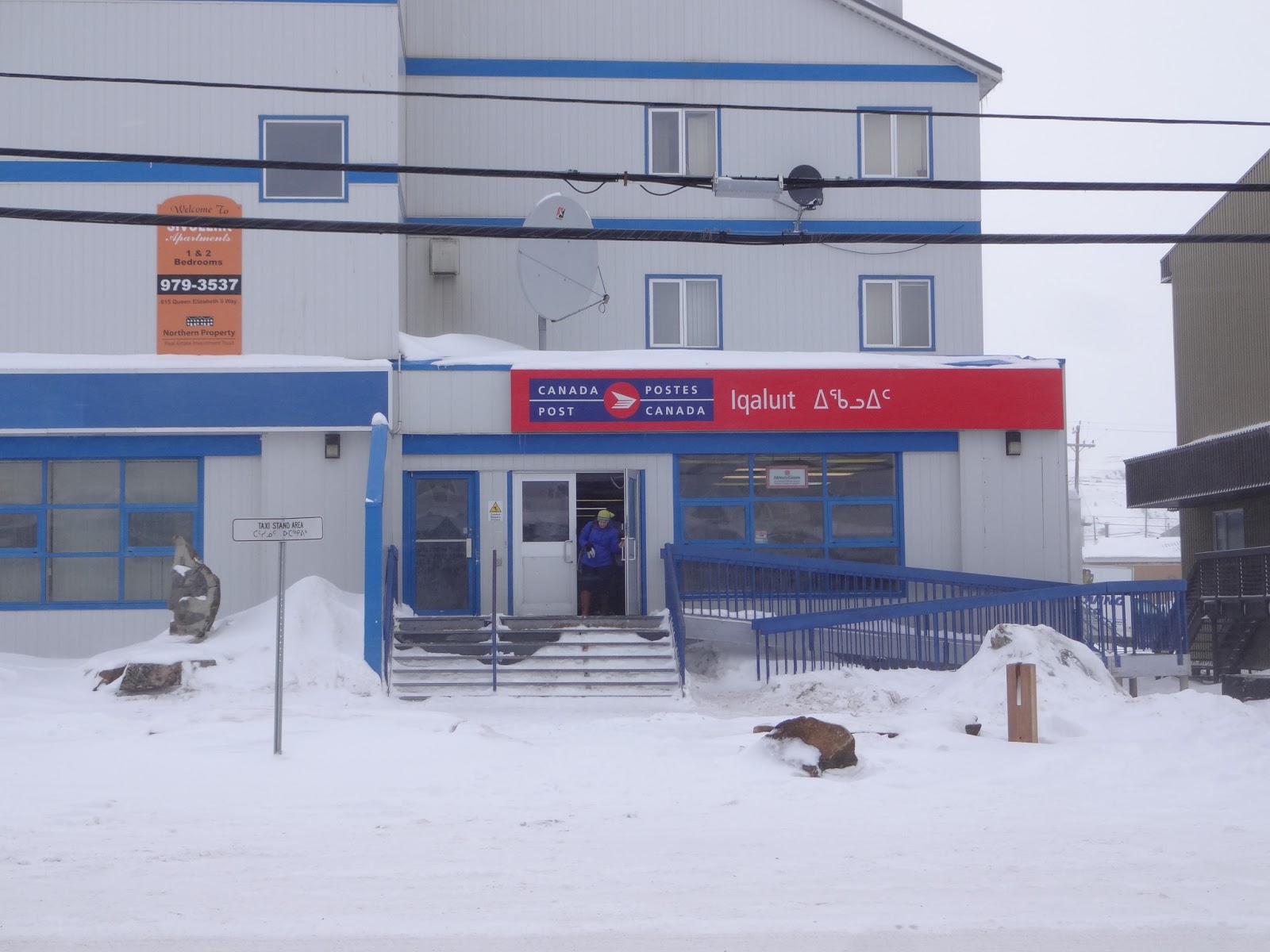 We also stopped by the post office to mail postcards to friends and family at home. The symbols you see on the sign next to "Iqaluit" is the city's name in Inuktitut--one of Nunavut's four official languages. The name "Iqaluit" means "many fish", and not "plenty of fish" like Niall accidentally answered when Ashley quizzed us (I wonder what website he visits...). The answer to the previous question--according to the tourist guide book we were reading, the population of Bathurst Inlet is 5. According to Wikipedia, that information is from the 2001 census. The 2011 census reads population: 0.